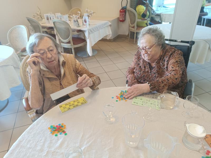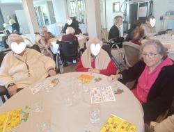 Nous poursuivons la journée en jouant avec les numéros ; nos résidents se sont retrouvés à 14h45 au restaurant pour le traditionnel LOTO de Pâques.
